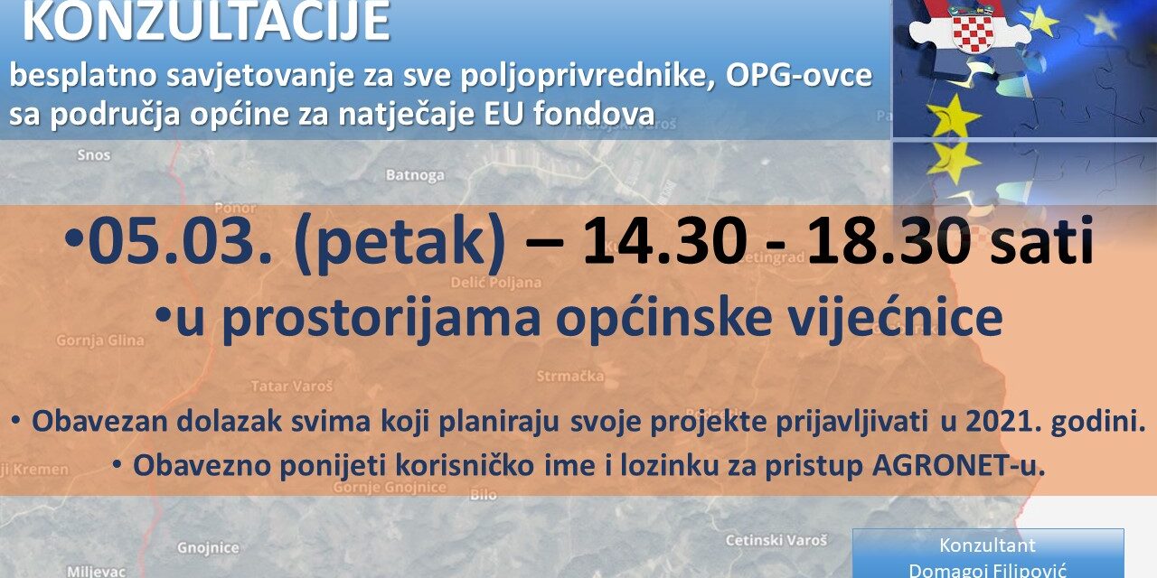 Feb262021Category: VijestiBy Cetingrad26/02/2021Povezane objaveJAVNI NATJEČAJ za predlaganje programa i projekata javnih potreba u području djelovanja udruga građana Općine Cetingrad za 2026. godinu25/03/2026JAVNI POZIV za dodjelu potpora male vrijednosti u poljoprivredi za 2026. godinu25/03/2026Bajram Šerif Mubarek Olsun20/03/2026U Cetingradu svečano obilježen blagdan Svetog Josipa i tradicionalni izložbeni stočni sajam19/03/2026Predsjednik Hrvatskoga sabora Gordan Jandroković primio izaslanstvo Općine Cetingrad i Udruge Cetin – 1527. Cetingrad18/03/2026Privremena regulacija prometa u Cetingradu povodom blagdana Sv. Josipa17/03/2026